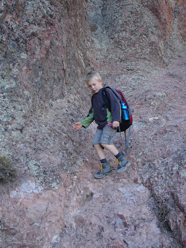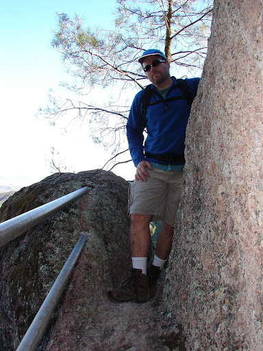 Here is the steep and narrow part of the High Peaks trail, described as the "heart of the Pinnacles rock formations". I had Robert tied to a rope the first time through, although we liked this trail so much we did it again the next day without ropes. -- 2009.01.10 Pinnacles 178.jpg